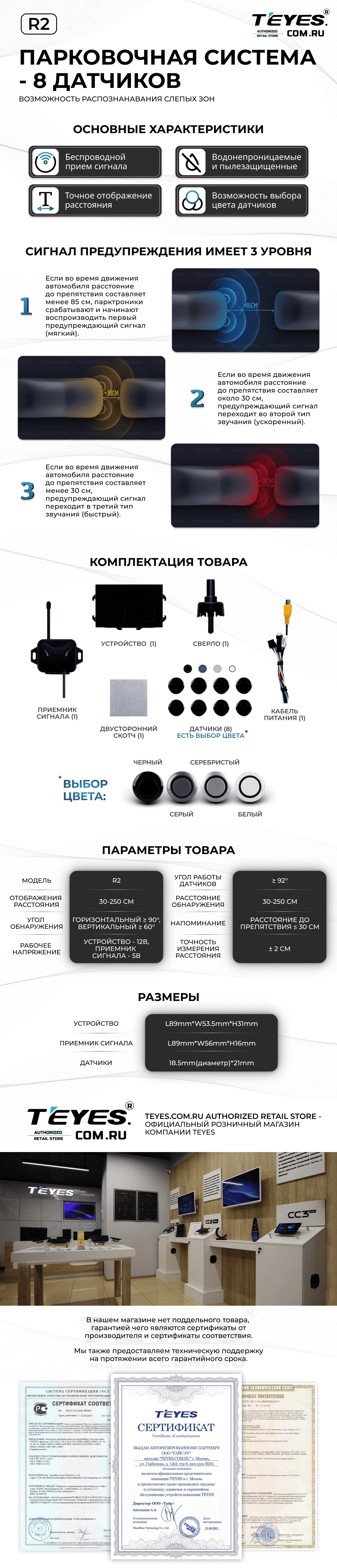 Передние и задние парктроники Teyes R2 для CC4 Pro / CC4 / CC4L / CC3 2K / CC3 / CC3L / CC2 Plus / SPRO Plus / TPRO2 / LUX ONE (Серебристые) 8-датчиков - купить всего за 19 900 руб. в интернет-магазине в Барнауле Teyes.com.ru. ✓ Самый лучший выбор мультимедиа ✓ Лучшая замена штатному ГУ ✓ Тел. +7 (800) 775-31-74