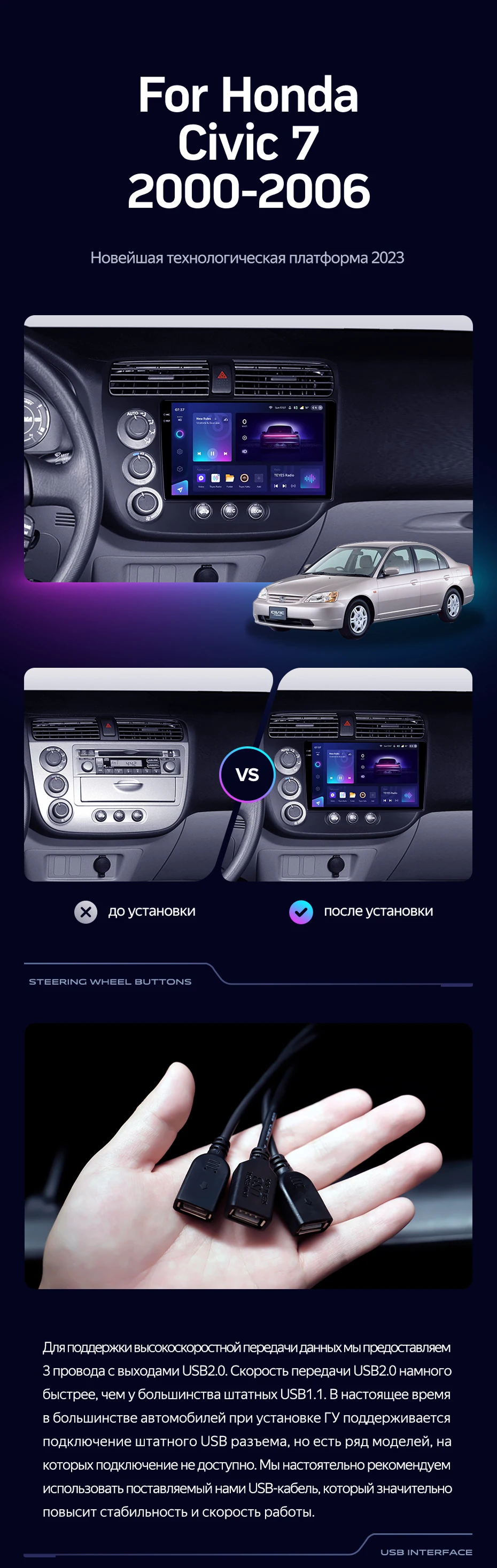 Штатная магнитола Teyes CC3 2K 4/64 Honda Civic 7 (2000-2006) F3 Правый руль - купить всего за 47 500 руб. в интернет-магазине в Барнауле Teyes.com.ru. ✓ Самый лучший выбор мультимедиа ✓ Лучшая замена штатному ГУ ✓ Тел. +7 (800) 775-31-74