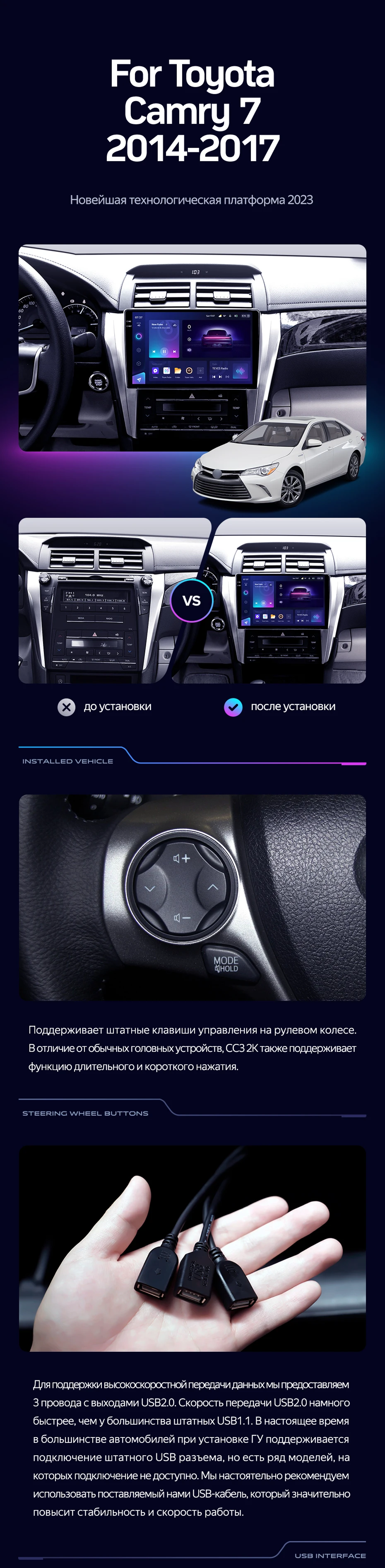 Штатная магнитола Teyes CC3 2K 6/128 Toyota Camry 7 XV 50 55 (2014-2017) (13") F4 - купить всего за 47 360 руб. в интернет-магазине в Барнауле Teyes.com.ru. ✓ Самый лучший выбор мультимедиа ✓ Лучшая замена штатному ГУ ✓ Тел. +7 (800) 775-31-74