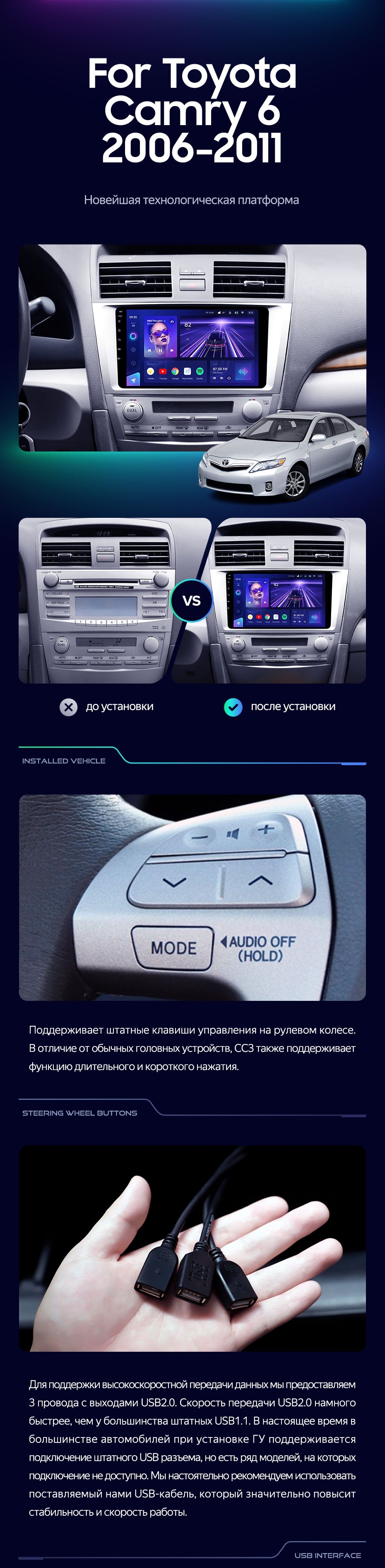 Штатная магнитола Teyes CC3 4/32 Toyota Camry 6 XV 40 (2006-2011) 10" F5 - купить всего за 32 320 руб. в интернет-магазине в Барнауле Teyes.com.ru. ✓ Самый лучший выбор мультимедиа ✓ Лучшая замена штатному ГУ ✓ Тел. +7 (800) 775-31-74