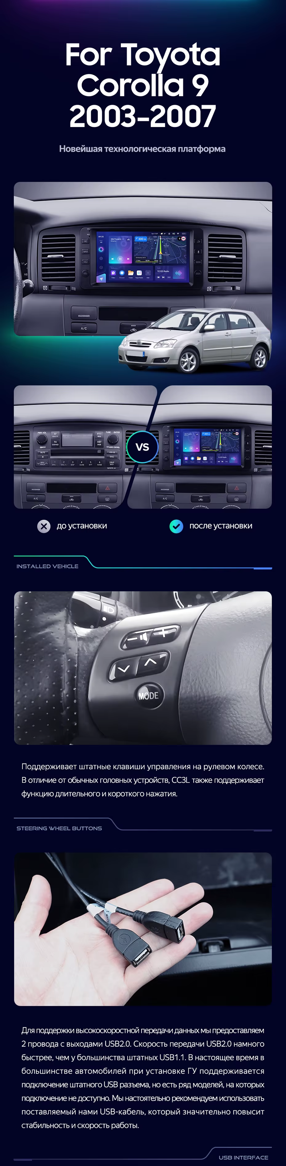 Штатная магнитола Teyes CC3 4/32 Toyota Corolla 9 E120 E130 (2003-2007) 7" - купить всего за 32 500 руб. в интернет-магазине в Барнауле Teyes.com.ru. ✓ Самый лучший выбор мультимедиа ✓ Лучшая замена штатному ГУ ✓ Тел. +7 (800) 775-31-74