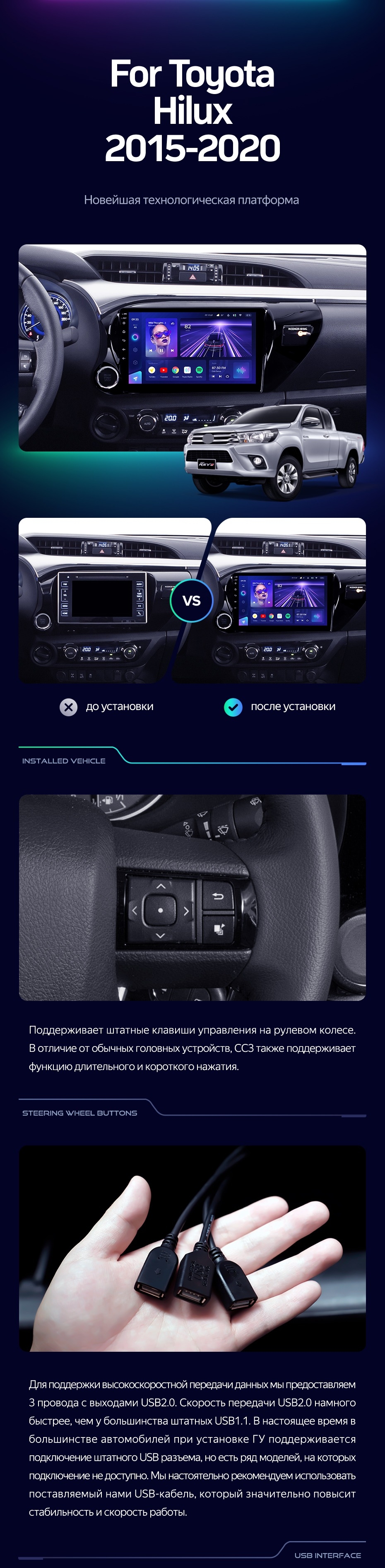 Штатная магнитола Teyes CC3L 4/32 Toyota Hilux Pick Up (2015-2020) - купить всего за 27 800 руб. в интернет-магазине в Барнауле Teyes.com.ru. ✓ Самый лучший выбор мультимедиа ✓ Лучшая замена штатному ГУ ✓ Тел. +7 (800) 775-31-74