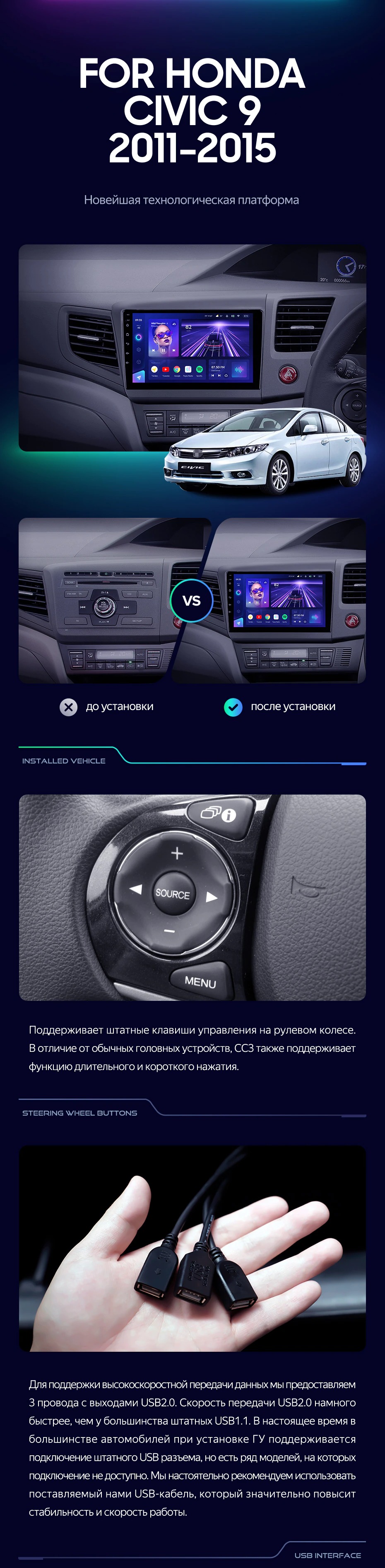 Штатная магнитола Teyes CC3L 4/64 Honda Civic 9 FB FK FD (2011-2015) - купить всего за 31 500 руб. в интернет-магазине в Барнауле Teyes.com.ru. ✓ Самый лучший выбор мультимедиа ✓ Лучшая замена штатному ГУ ✓ Тел. +7 (800) 775-31-74