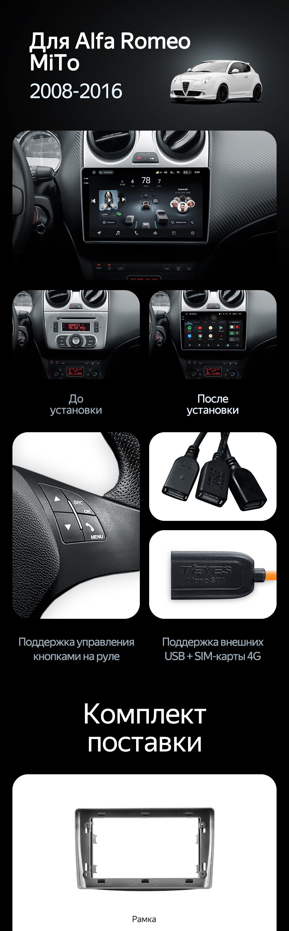 Штатная магнитола Teyes CC4 6/64 Alfa Romeo MiTo 955 (2008-2016) - купить всего за 50 500 руб. в интернет-магазине в Барнауле Teyes.com.ru. ✓ Самый лучший выбор мультимедиа ✓ Лучшая замена штатному ГУ ✓ Тел. +7 (800) 775-31-74