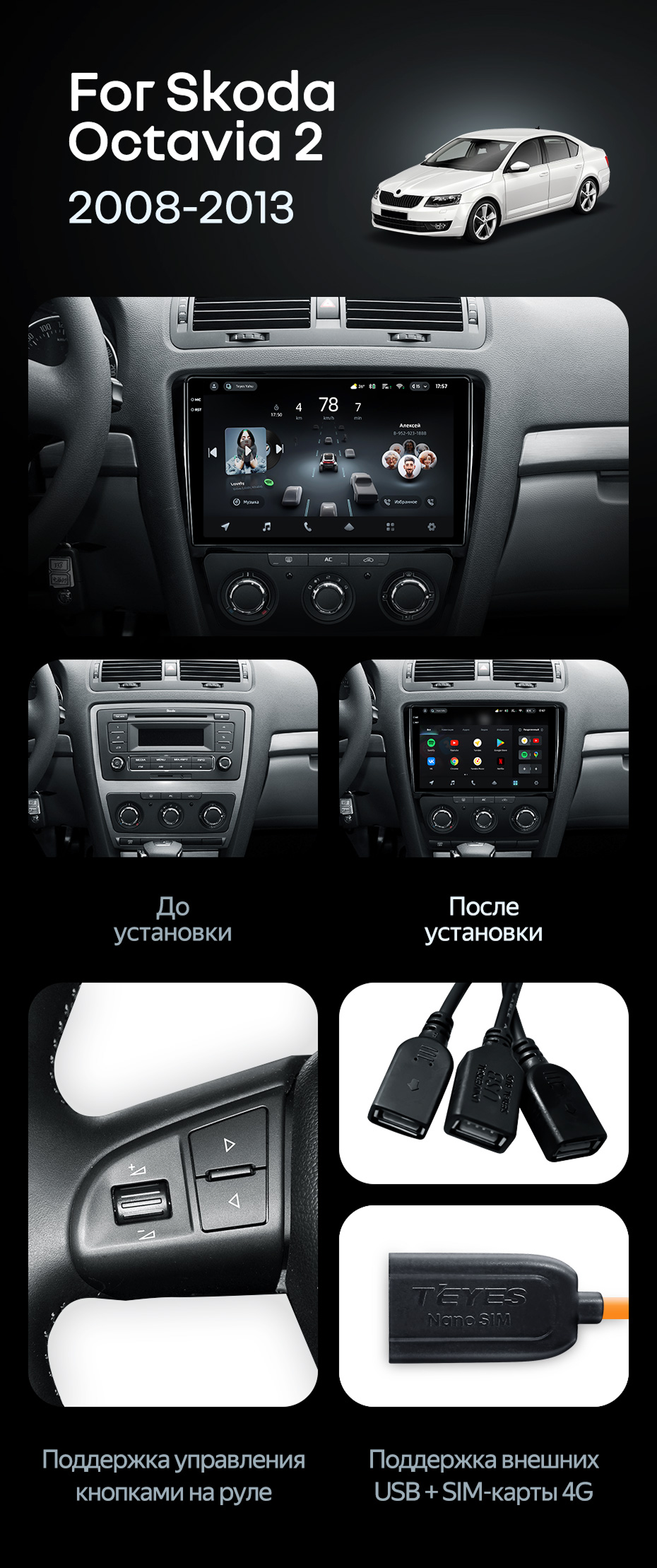 Штатная магнитола Teyes CC4 6/64 Skoda Octavia 2 A5 (2008-2013) - купить всего за 48 000 руб. в интернет-магазине в Барнауле Teyes.com.ru. ✓ Самый лучший выбор мультимедиа ✓ Лучшая замена штатному ГУ ✓ Тел. +7 (800) 775-31-74