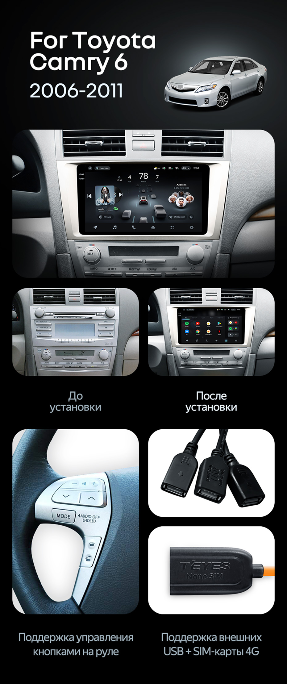 Штатная магнитола Teyes CC4 6/64 Toyota Camry 6 XV 40 (2006-2011) F1 - купить всего за 47 020 руб. в интернет-магазине в Барнауле Teyes.com.ru. ✓ Самый лучший выбор мультимедиа ✓ Лучшая замена штатному ГУ ✓ Тел. +7 (800) 775-31-74