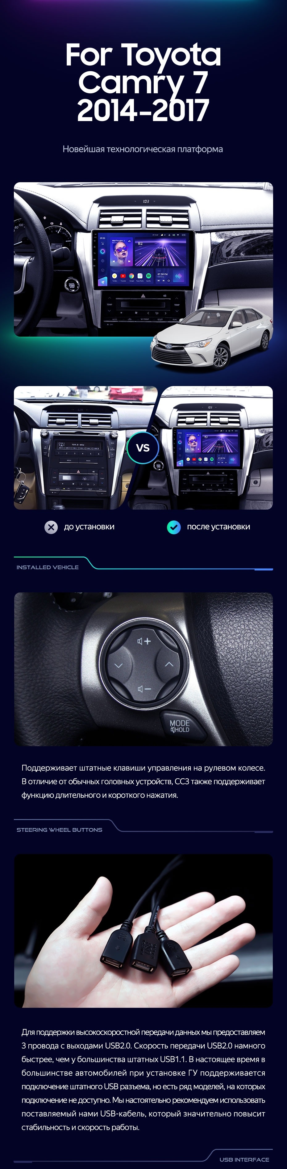 Штатная магнитола Teyes CC4 6/64 Toyota Camry 7 XV 50 55 (2014-2017) F4 - купить всего за 47 800 руб. в интернет-магазине в Барнауле Teyes.com.ru. ✓ Самый лучший выбор мультимедиа ✓ Лучшая замена штатному ГУ ✓ Тел. +7 (800) 775-31-74