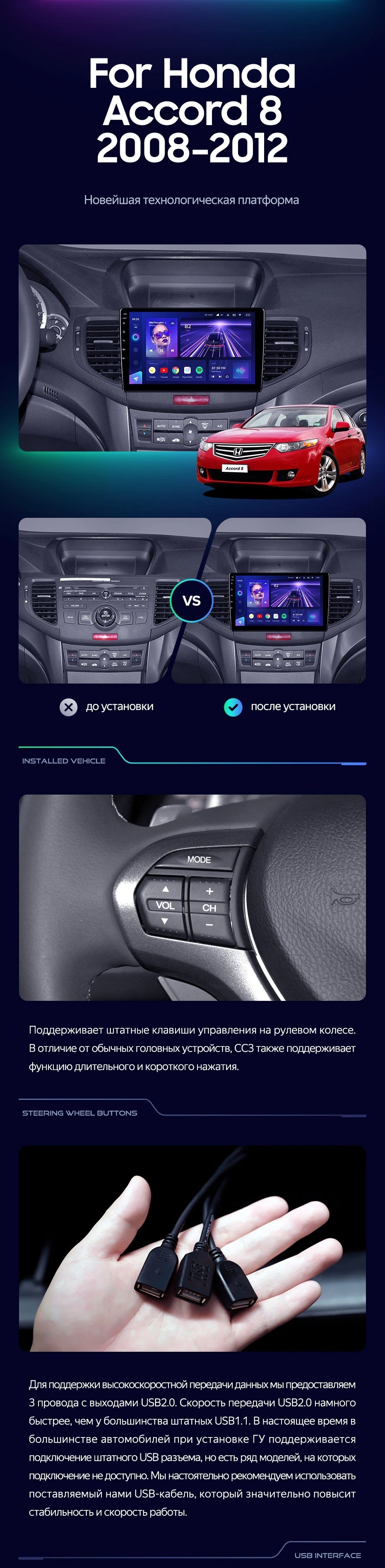 Штатная магнитола Teyes CC4 8/128 Honda Accord 8 (2008-2012) - купить всего за 53 600 руб. в интернет-магазине в Барнауле Teyes.com.ru. ✓ Самый лучший выбор мультимедиа ✓ Лучшая замена штатному ГУ ✓ Тел. +7 (800) 775-31-74