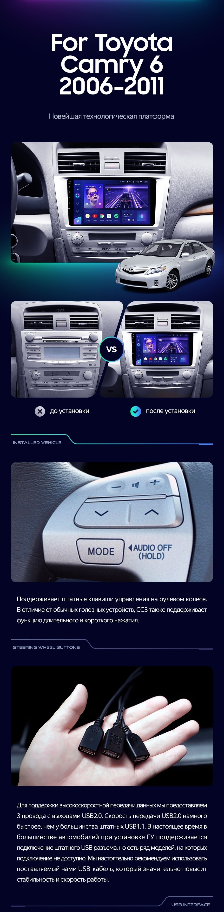 Штатная магнитола Teyes CC4 8/128 Toyota Camry 6 XV 40 (2006-2011) 10" F5 - купить всего за 52 620 руб. в интернет-магазине в Барнауле Teyes.com.ru. ✓ Самый лучший выбор мультимедиа ✓ Лучшая замена штатному ГУ ✓ Тел. +7 (800) 775-31-74