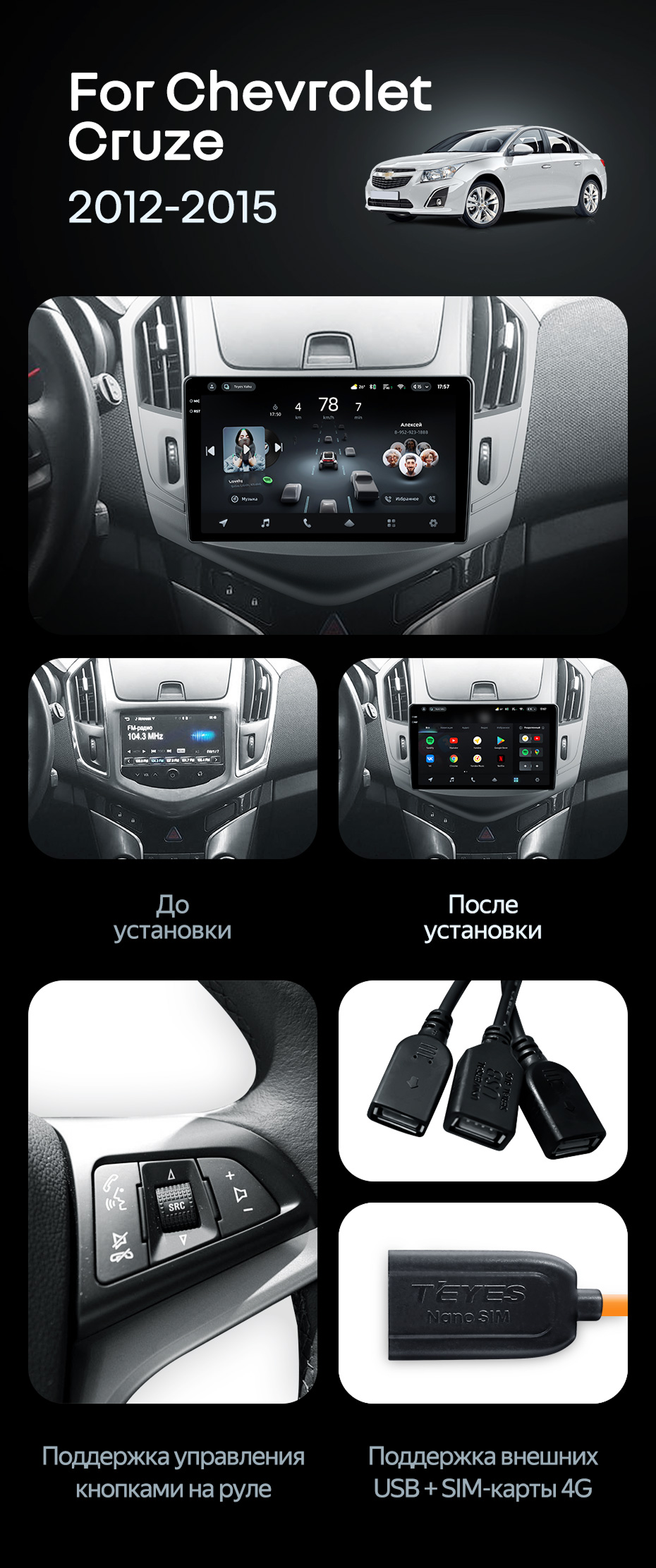 Штатная магнитола Teyes CC4 Pro 12/256 Chevrolet Cruze J300 J308 (2012-2015) F1 - купить всего за 68 630 руб. в интернет-магазине в Барнауле Teyes.com.ru. ✓ Самый лучший выбор мультимедиа ✓ Лучшая замена штатному ГУ ✓ Тел. +7 (800) 775-31-74