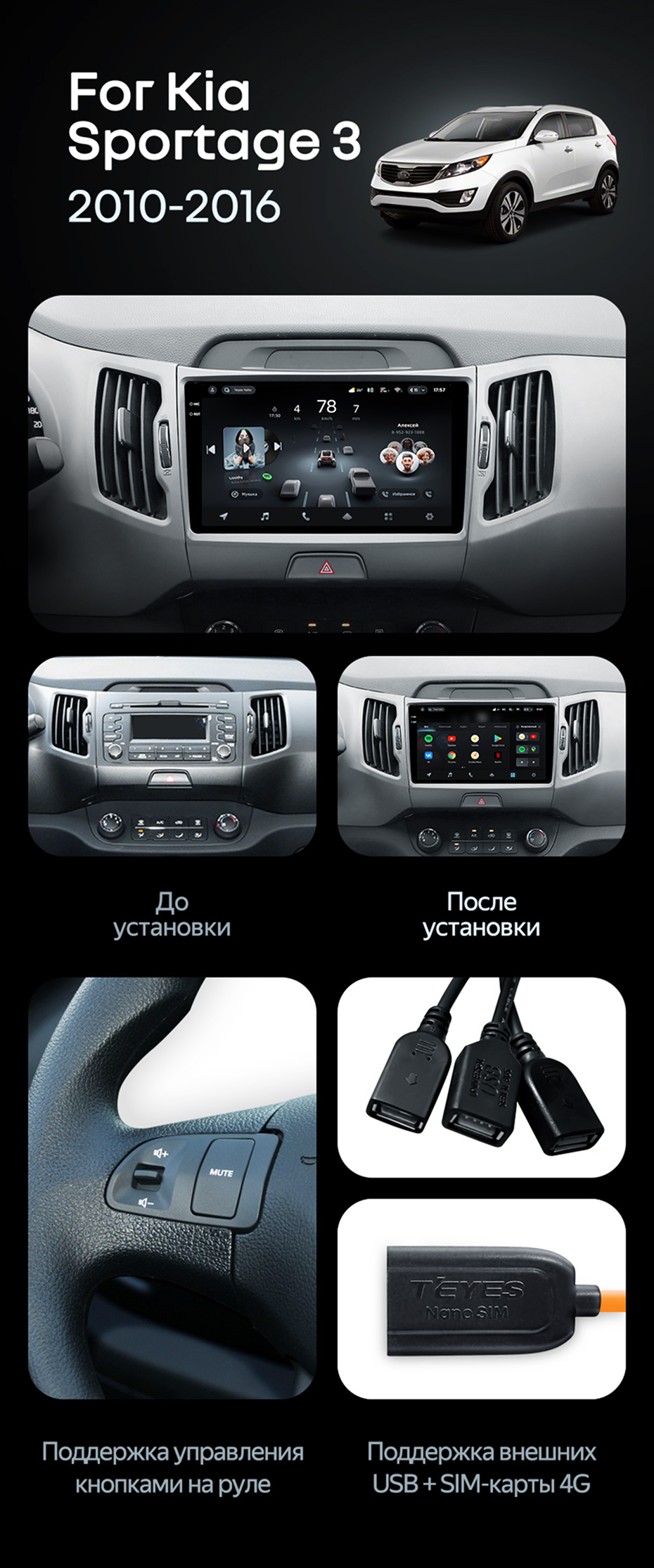 Штатная магнитола Teyes CC4 Pro 12/256 Kia Sportage 3 SL (2010-2016) Тип-C - купить всего за 68 260 руб. в интернет-магазине в Барнауле Teyes.com.ru. ✓ Самый лучший выбор мультимедиа ✓ Лучшая замена штатному ГУ ✓ Тел. +7 (800) 775-31-74