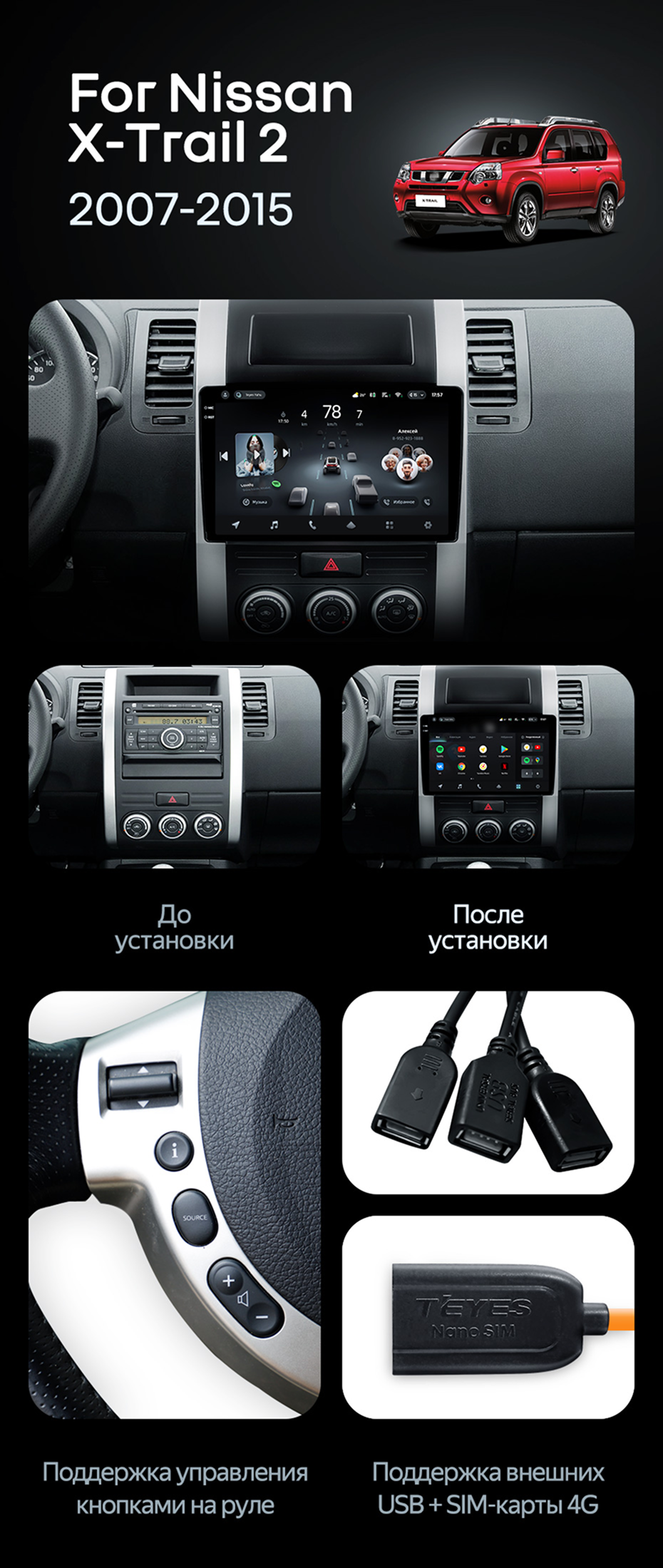 Штатная магнитола Teyes CC4 Pro 12/256 Nissan X-Trail T31 (2007-2015) - купить всего за 65 680 руб. в интернет-магазине в Барнауле Teyes.com.ru. ✓ Самый лучший выбор мультимедиа ✓ Лучшая замена штатному ГУ ✓ Тел. +7 (800) 775-31-74