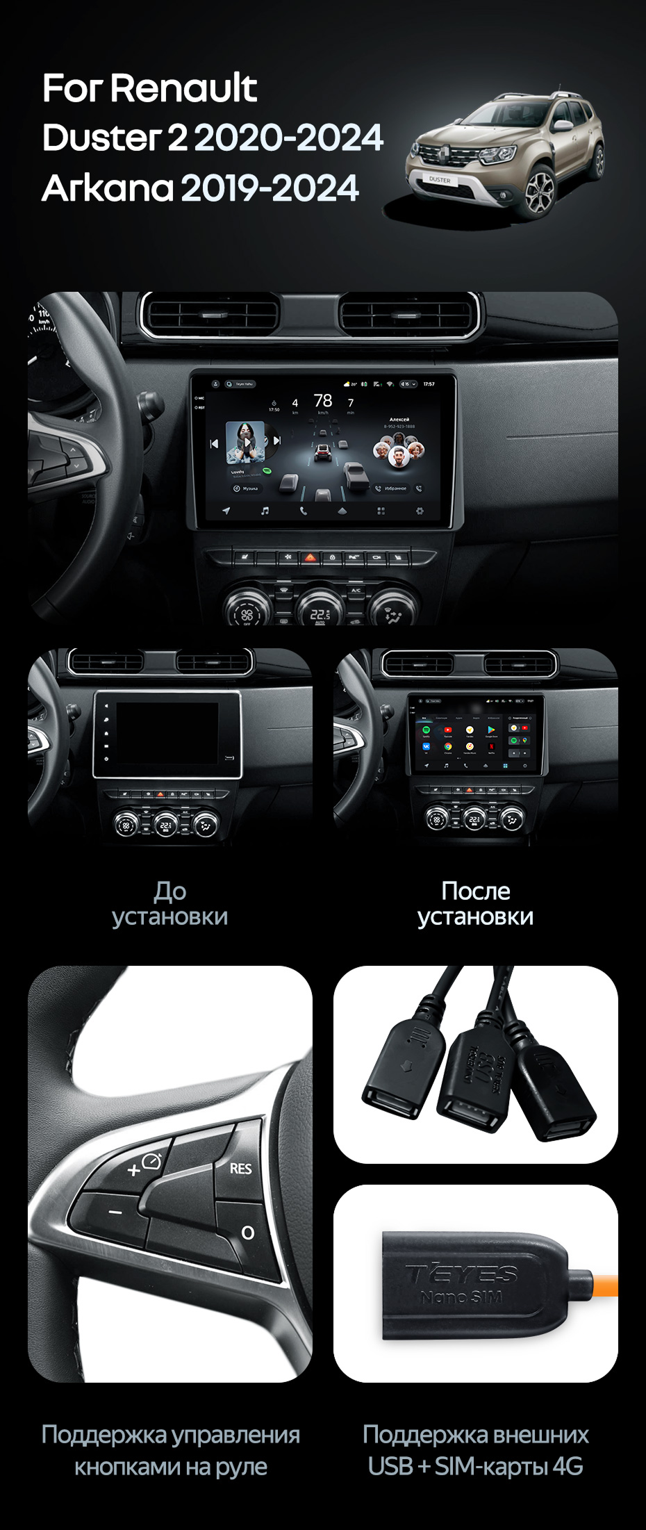 Штатная магнитола Teyes CC4 Pro 12/256 Renault Duster HM 2 (2020-2023) F1 - купить всего за 68 120 руб. в интернет-магазине в Барнауле Teyes.com.ru. ✓ Самый лучший выбор мультимедиа ✓ Лучшая замена штатному ГУ ✓ Тел. +7 (800) 775-31-74