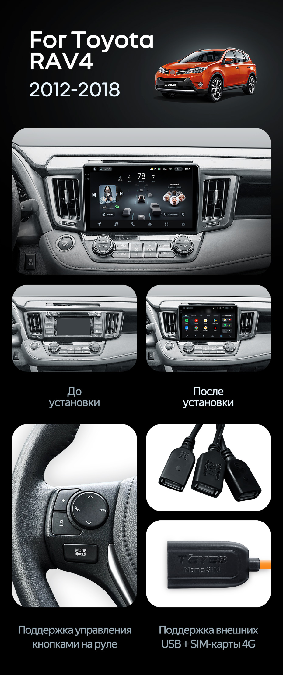 Штатная магнитола Teyes CC4 Pro 12/256 Toyota RAV4 (2012-2018) - купить всего за 66 850 руб. в интернет-магазине в Барнауле Teyes.com.ru. ✓ Самый лучший выбор мультимедиа ✓ Лучшая замена штатному ГУ ✓ Тел. +7 (800) 775-31-74