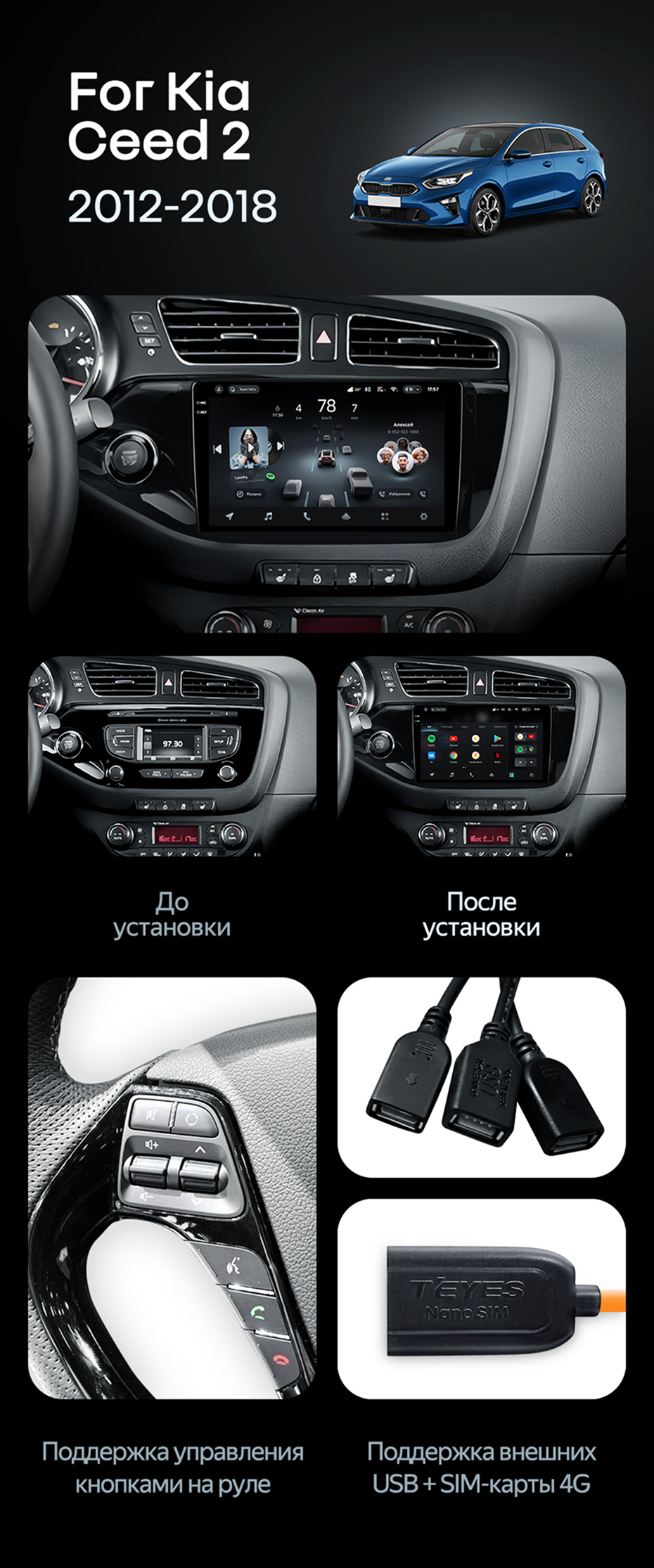 Штатная магнитола Teyes CC4 Pro 8/128 Kia Ceed 2 JD (2012-2018) - купить всего за 59 070 руб. в интернет-магазине в Барнауле Teyes.com.ru. ✓ Самый лучший выбор мультимедиа ✓ Лучшая замена штатному ГУ ✓ Тел. +7 (800) 775-31-74