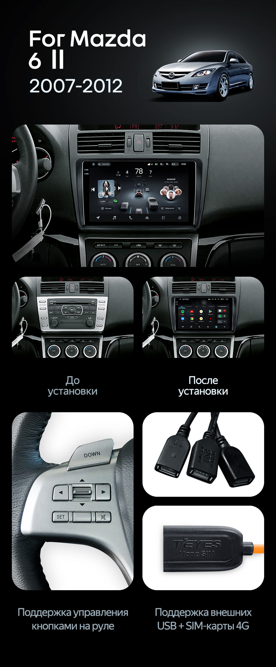 Штатная магнитола Teyes CC4 Pro 8/128 Mazda 6 2 GH (2007-2012) - купить всего за 58 730 руб. в интернет-магазине в Барнауле Teyes.com.ru. ✓ Самый лучший выбор мультимедиа ✓ Лучшая замена штатному ГУ ✓ Тел. +7 (800) 775-31-74