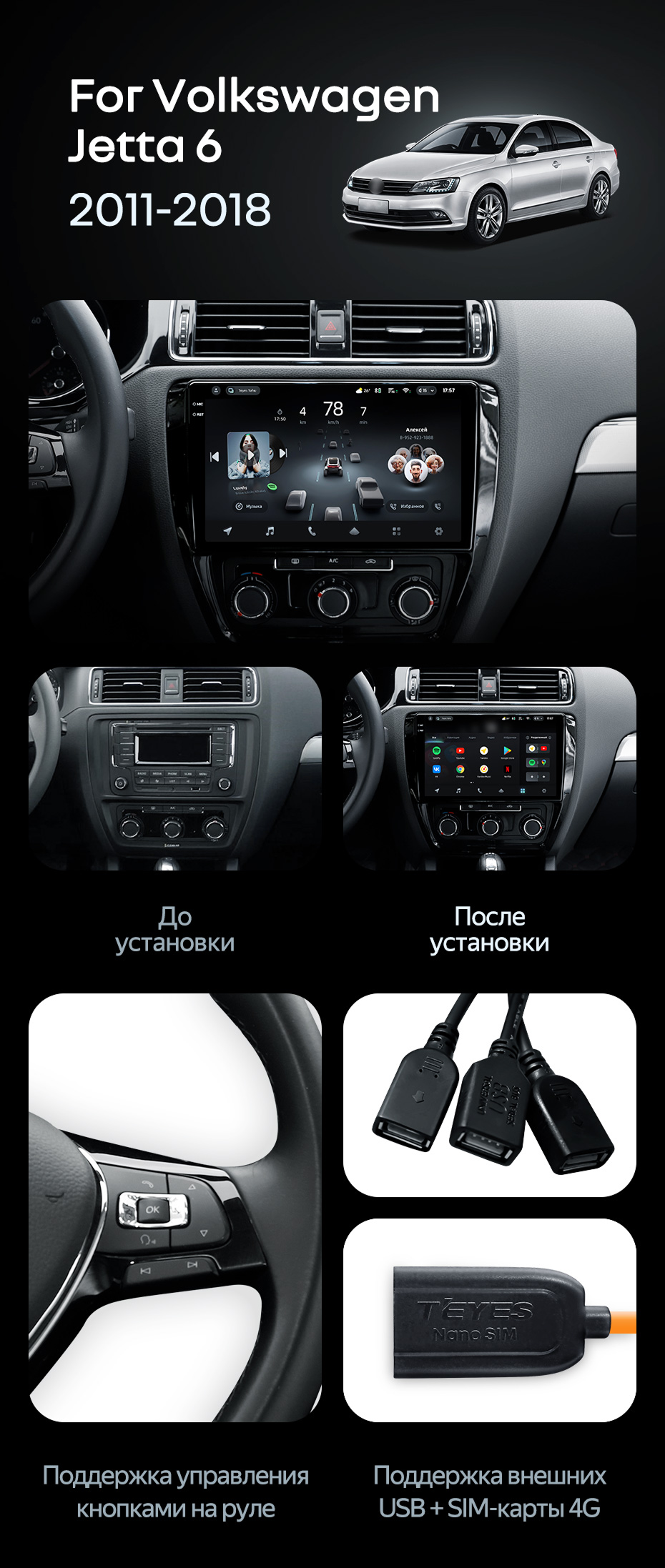 Штатная магнитола Teyes CC4 Pro 8/128 Volkswagen Jetta 6 (2011-2018) - купить всего за 56 330 руб. в интернет-магазине в Барнауле Teyes.com.ru. ✓ Самый лучший выбор мультимедиа ✓ Лучшая замена штатному ГУ ✓ Тел. +7 (800) 775-31-74