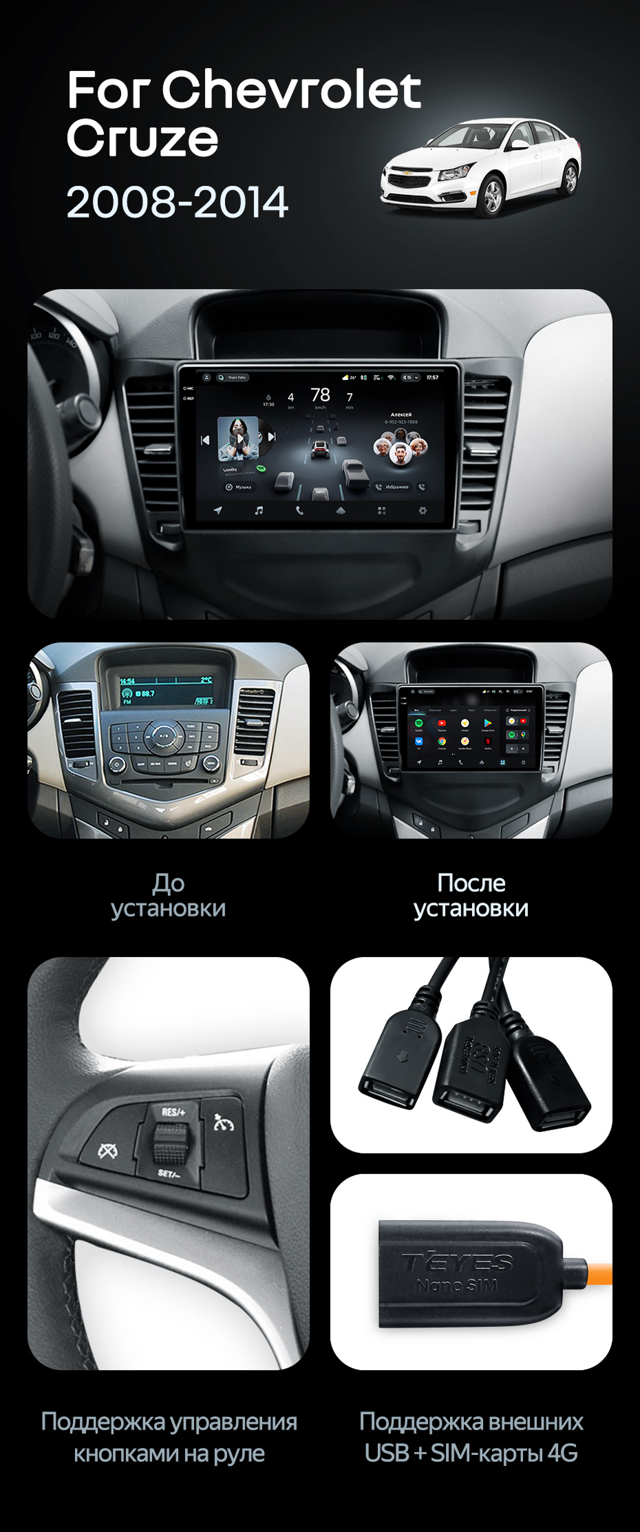 Штатная магнитола Teyes CC4L 6/64 Chevrolet Cruze J300 (2008-2014) - купить всего за 31 050 руб. в интернет-магазине в Барнауле Teyes.com.ru. ✓ Самый лучший выбор мультимедиа ✓ Лучшая замена штатному ГУ ✓ Тел. +7 (800) 775-31-74