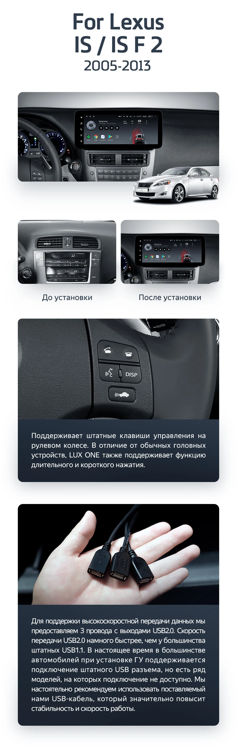 Штатная магнитола Teyes LUX ONE 360 6/128 Lexus IS F 200D 220D 250 250C 300 350 350C 2 XE20 (2005-2013) - купить всего за 71 500 руб. в интернет-магазине в Барнауле Teyes.com.ru. ✓ Самый лучший выбор мультимедиа ✓ Лучшая замена штатному ГУ ✓ Тел. +7 (800) 775-31-74