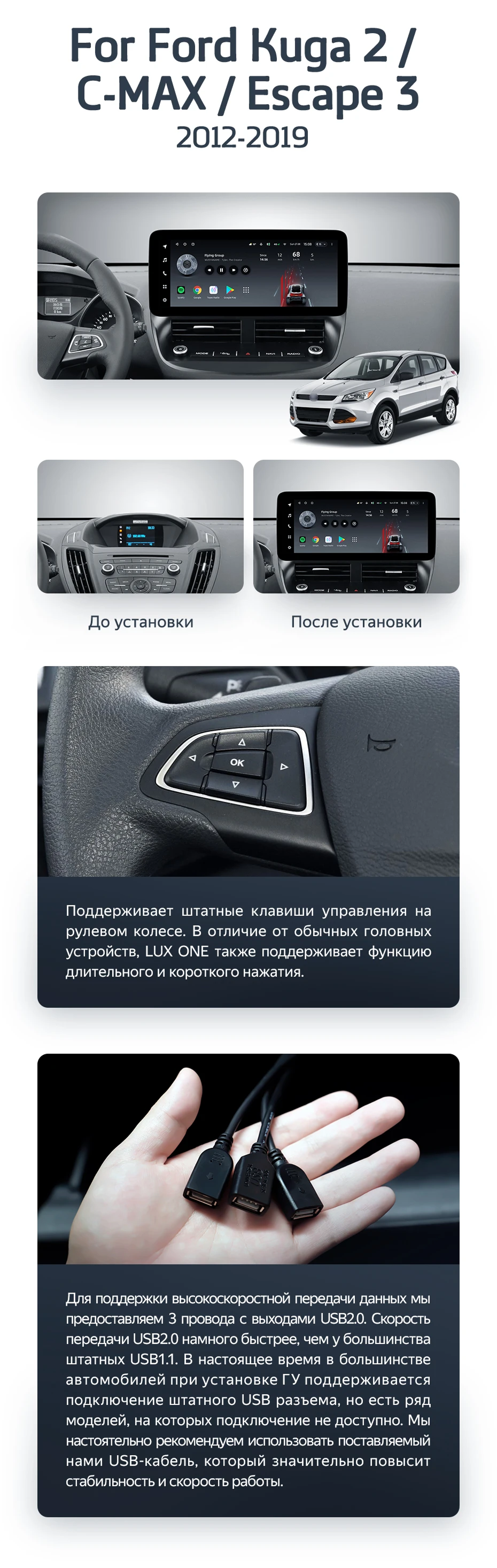Штатная магнитола Teyes LUX ONE 6/128 Ford Kuga 2 (2012-2019) - купить всего за 51 400 руб. в интернет-магазине в Барнауле Teyes.com.ru. ✓ Самый лучший выбор мультимедиа ✓ Лучшая замена штатному ГУ ✓ Тел. +7 (800) 775-31-74