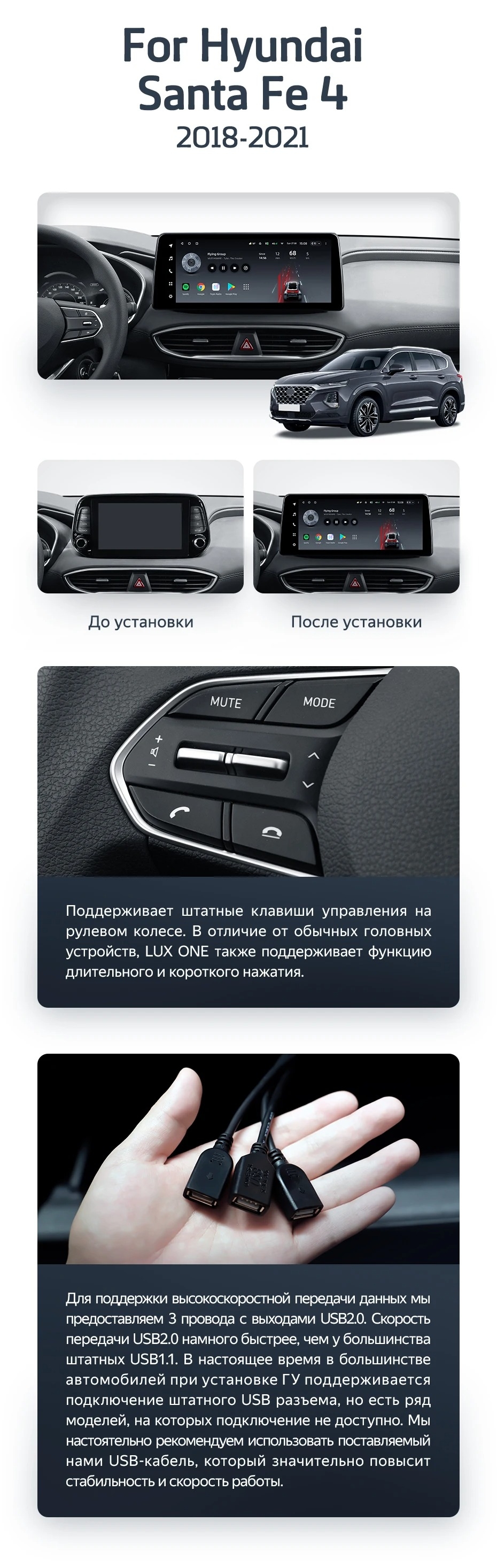 Штатная магнитола Teyes LUX ONE 6/128 Hyundai Santa Fe 4 (2018-2021) - купить всего за 48 300 руб. в интернет-магазине в Барнауле Teyes.com.ru. ✓ Самый лучший выбор мультимедиа ✓ Лучшая замена штатному ГУ ✓ Тел. +7 (800) 775-31-74