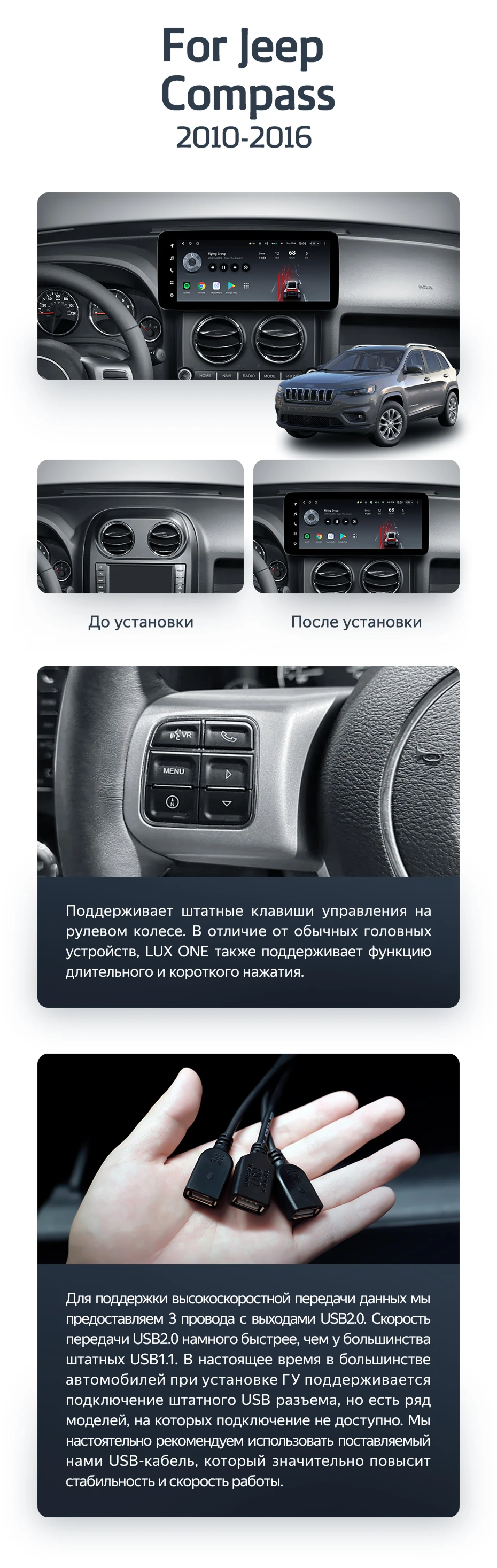 Штатная магнитола Teyes LUX ONE 6/128 Jeep Compass MK (2010-2016) - купить всего за 51 600 руб. в интернет-магазине в Барнауле Teyes.com.ru. ✓ Самый лучший выбор мультимедиа ✓ Лучшая замена штатному ГУ ✓ Тел. +7 (800) 775-31-74
