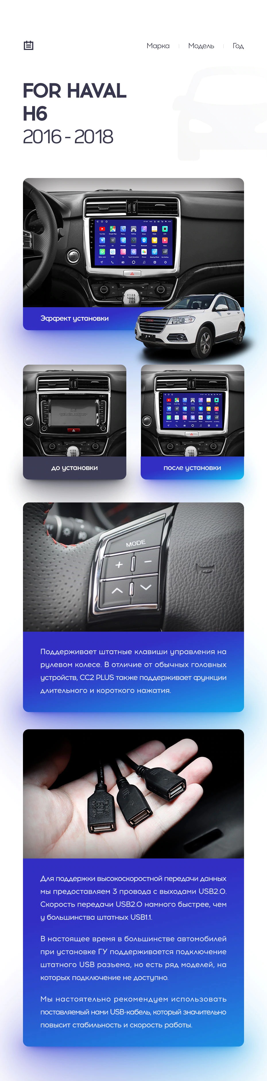 Полный комплект установки магнитолы Teyes с рамкой и проводкой можно выбрать в каталоге штатных магнитол Haval H6 (2016-2018).