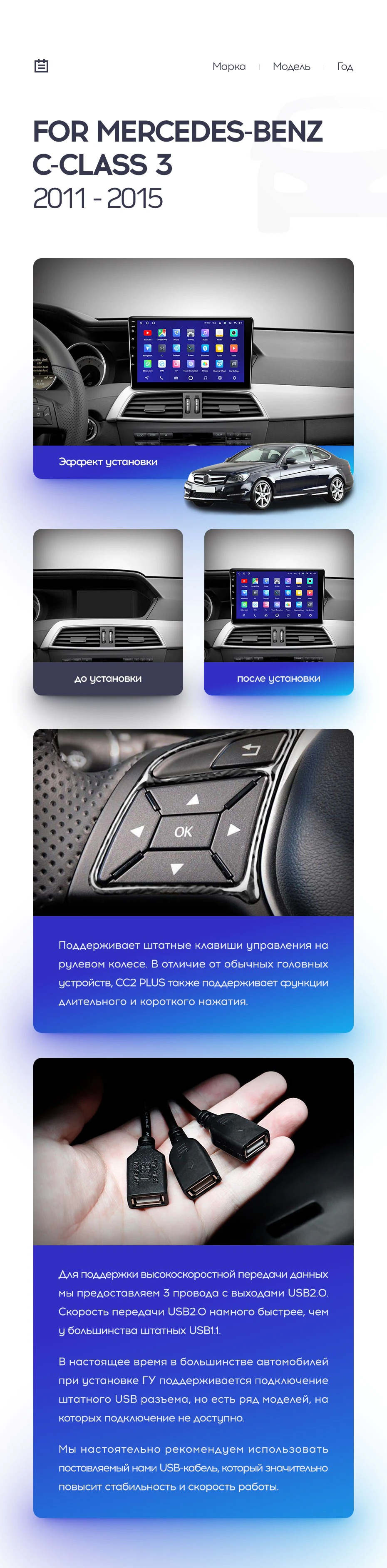 Полный комплект установки магнитолы Teyes с рамкой и проводкой можно выбрать в каталоге штатных магнитол Mercedes-Benz C-Class W204 C204 S204 (2011-2015).