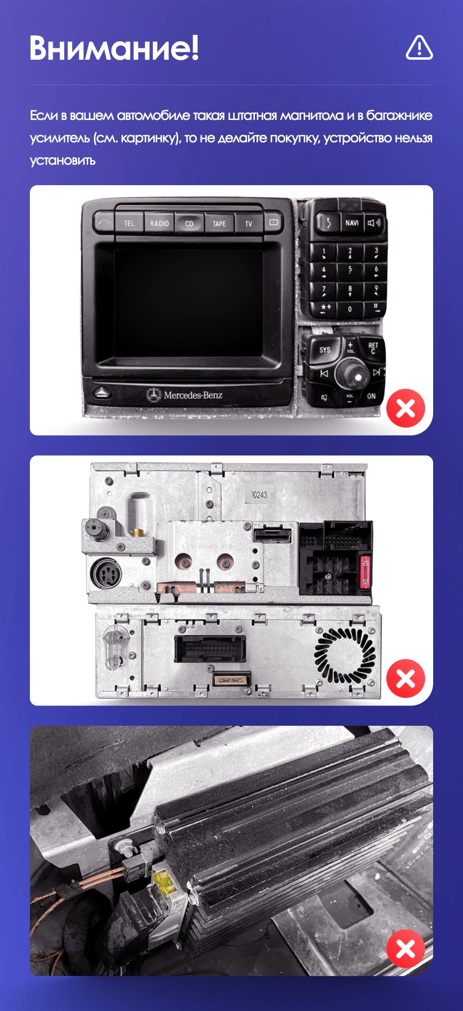 Установочный комплект для Mercedes Benz S-Class W220 VV220 (1998-2005) включает переходную рамку и проводку.