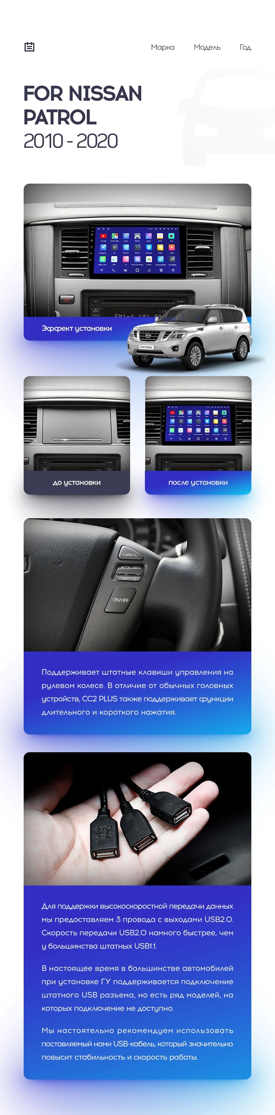 Полный комплект установки магнитолы Teyes с рамкой и проводкой можно выбрать в каталоге штатных магнитол Nissan Patrol Y62 (2010-2020).