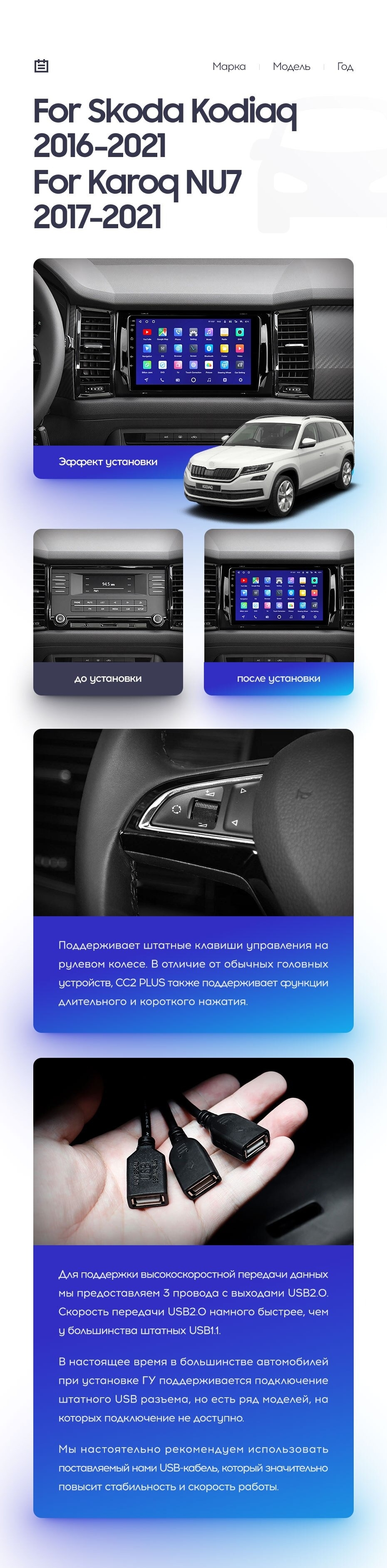 Полный комплект установки магнитолы Teyes с рамкой и проводкой можно выбрать в каталоге штатных магнитол Skoda Karoq (2017-2022).