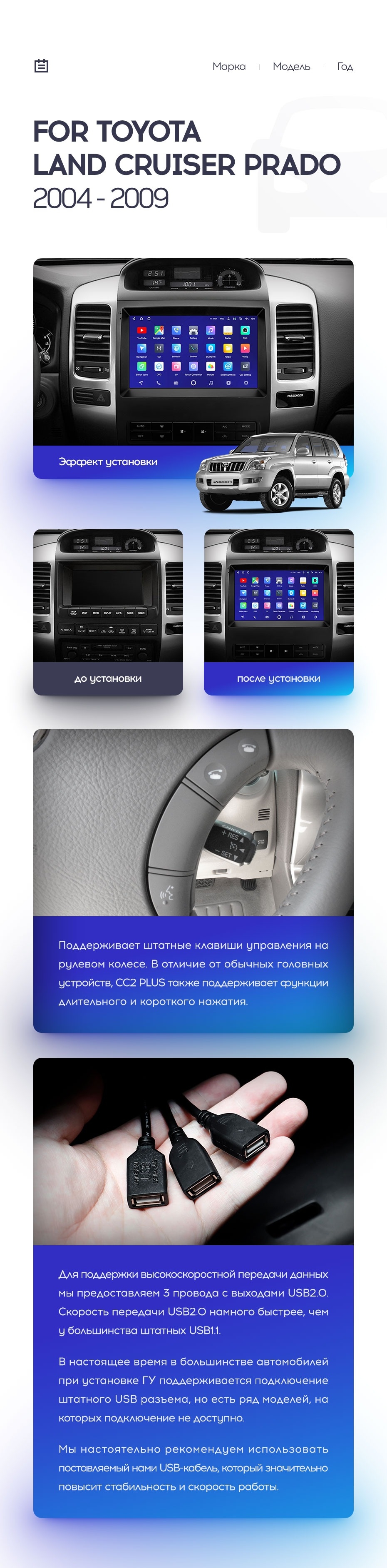 Полный комплект установки магнитолы Teyes с рамкой и проводкой можно выбрать в каталоге штатных магнитол Lexus GX470 (2002-2009).
